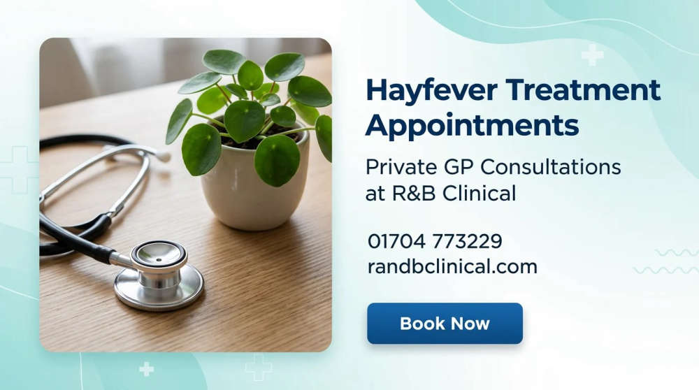 If over-the-counter antihistamines and nasal sprays are no longer providing the relief you need, the GMC-registered GPs at R&B Clinical are here to help. They provide comprehensive clinical consultations for patients struggling with persistent seasonal allergic rhinitis (hayfever).